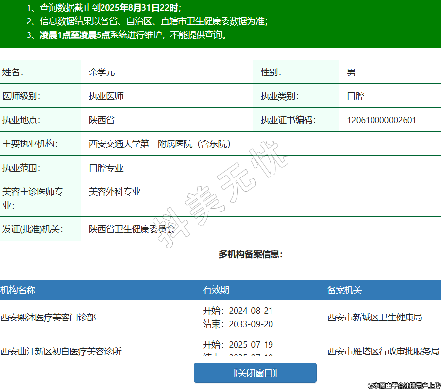 姓名:余學(xué)元性別:男醫(yī)師級(jí)別:執(zhí)業(yè)醫(yī)師執(zhí)業(yè)類別:口腔執(zhí)業(yè)地點(diǎn):陜西省執(zhí)業(yè)證書(shū)編碼:120610000002601主要執(zhí)業(yè)機(jī)構(gòu):西安交通大學(xué)第一附屬醫(yī)院(含東院)執(zhí)業(yè)范圍:口腔專業(yè)美容主診醫(yī)師專業(yè):美容外科專業(yè)發(fā)證(批準(zhǔn))機(jī)關(guān):陜西省衛(wèi)生健康委員會(huì)多機(jī)構(gòu)備案信息: